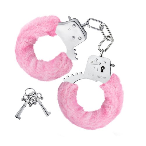 Estas esposas metálicas recubiertas con felpa son un complemento clásico para tus fantasías. Perfectas y suaves para principiantes, pero suficientemente firmes para los conocedores; estas esposas tienen un botón de seguridad para una liberación rápida en caso que las llaves se pierdan.