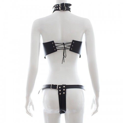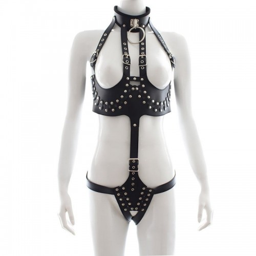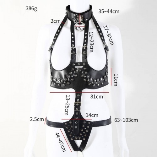 Este arnés corporal BDSM de SENS fluye sobre el cuerpo con un diseño abierto que combina correas ajustables, estructura tipo corset y detalles metálicos como argollas, hebillas y remaches, dejando el busto y la zona íntima al descubierto de forma natural y sugerente. El collar con argolla frontal ordena la pieza y guía la mirada a lo largo de la silueta, marcando cada línea con precisión. Pensado para juegos de rol, ofrece un ajuste firme y cómodo que realza la figura y transmite una sensación clara de seguridad, presencia y atractivo.