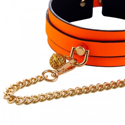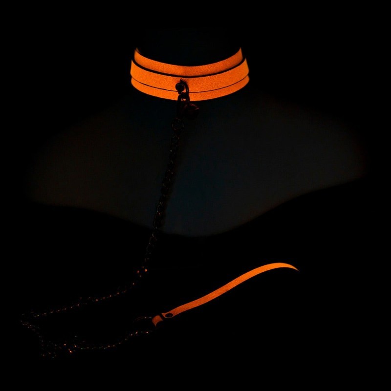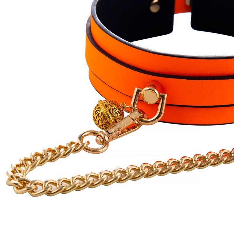 El Collar Fluorescente con Cadena SENS Naranje Neón transforma la oscuridad en parte del escenario. Su brillo destaca incluso cuando todo lo demás se apaga, guiando la mirada y marcando presencia. Se ajusta al cuello con comodidad y firmeza, mientras la cadena metálica incorpora un pequeño cascabel dorado que añade sonido y anticipación a cada movimiento. Un accesorio pensado para juegos eróticos consensuados donde el color, el sonido y el control elevan la experiencia.
