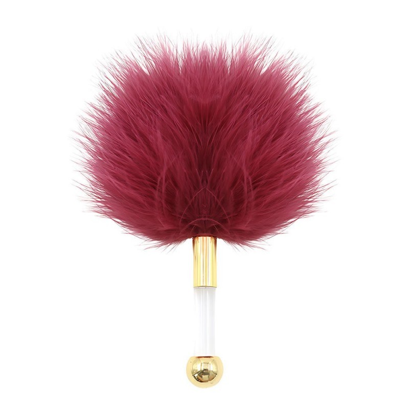 Este sofisticado plumero SENS en color rojo con mango dorado está diseñado para despertar la piel desde lo más sutil. Sus plumas suaves y abundantes rozan el cuerpo con una ligereza provocadora, creando una anticipación deliciosa antes de cualquier contacto más intenso. El mango metálico aporta firmeza, equilibrio y un contraste estimulante entre lo etéreo del roce y la solidez del agarre, convirtiéndolo en una pieza ideal para juegos sensoriales donde la seducción y la expectativa son parte del placer.