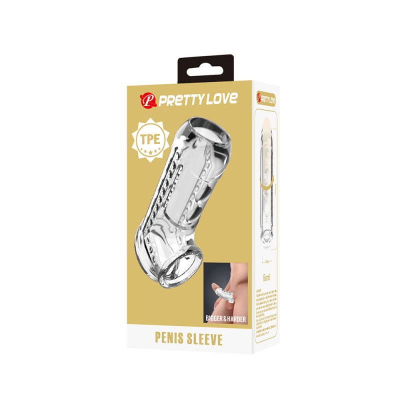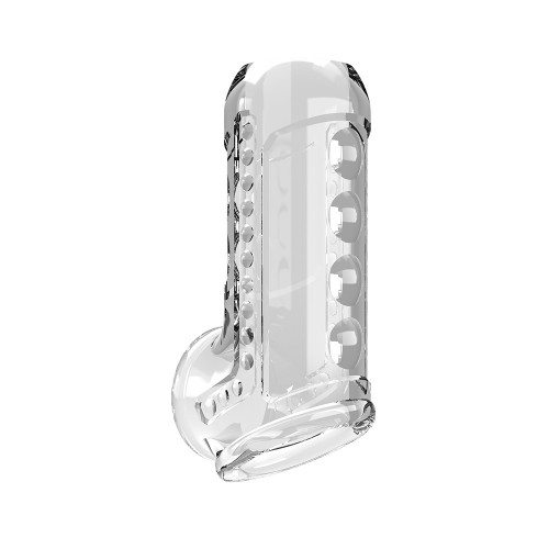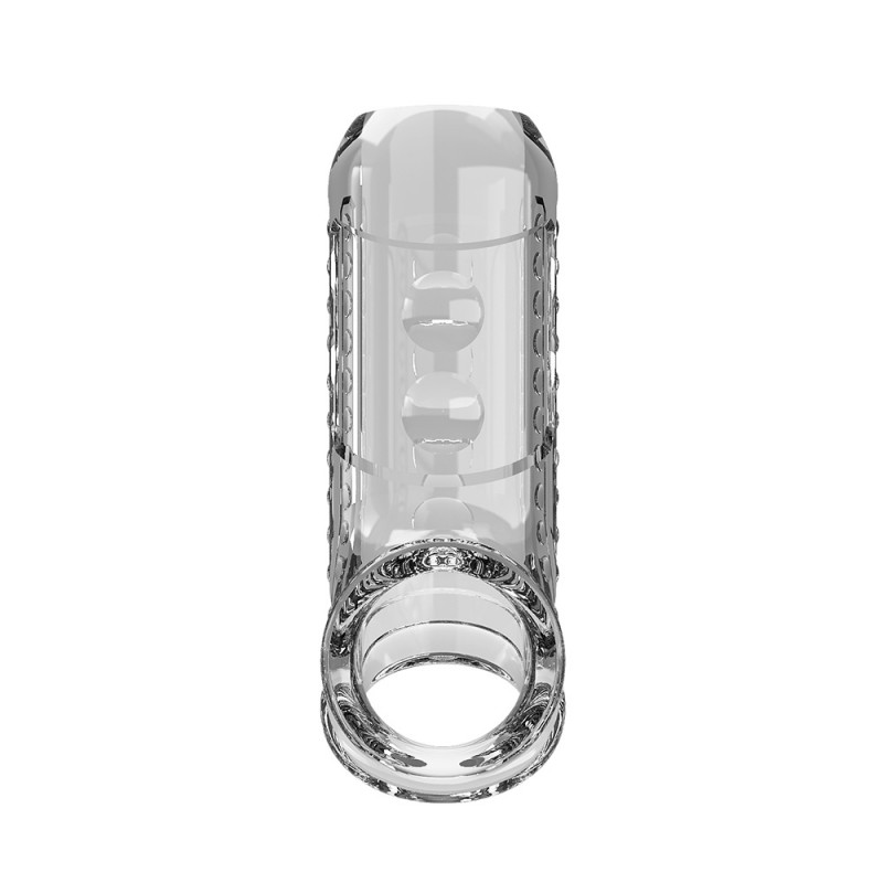 Farrel es una funda elasticada que se estira para cubrir el pene envolviéndolo con un material suave que cuenta con textura exterior para añadir estimulación extra para tu pareja. Su diseño cubre el tronco y la base del pene, pero dejando expuesto el glande; cuenta también con un orificio en su base para dejar libres los testículos, brindando un ajuste ergonómico y personalizado.