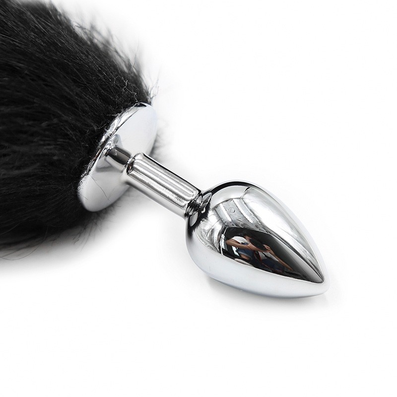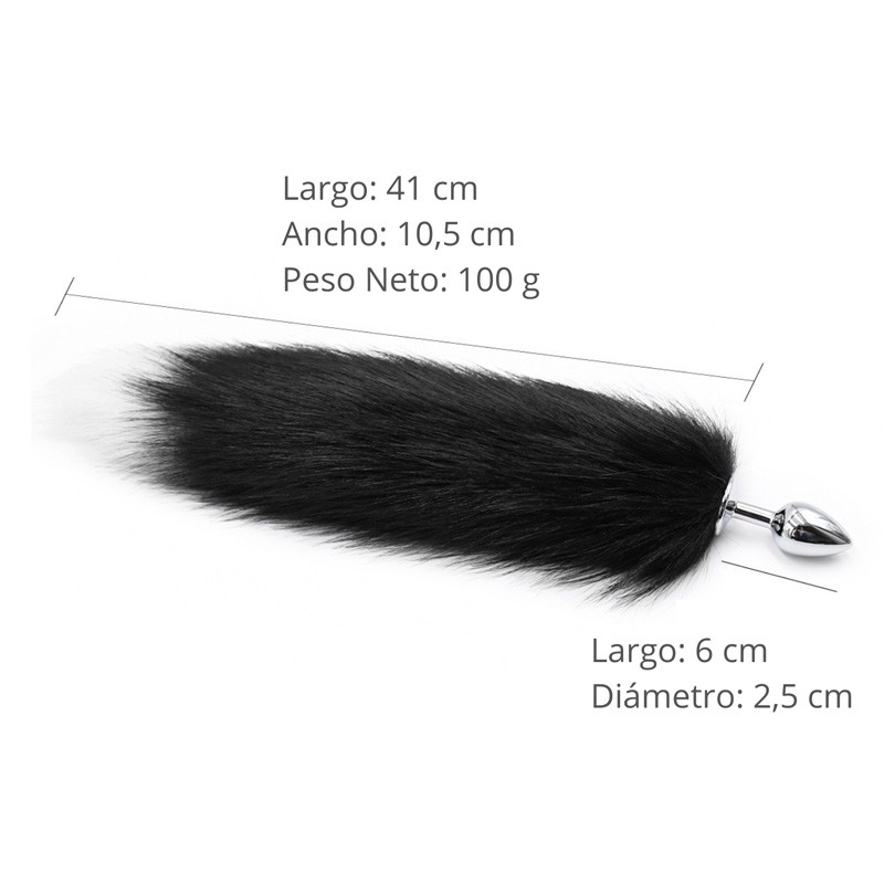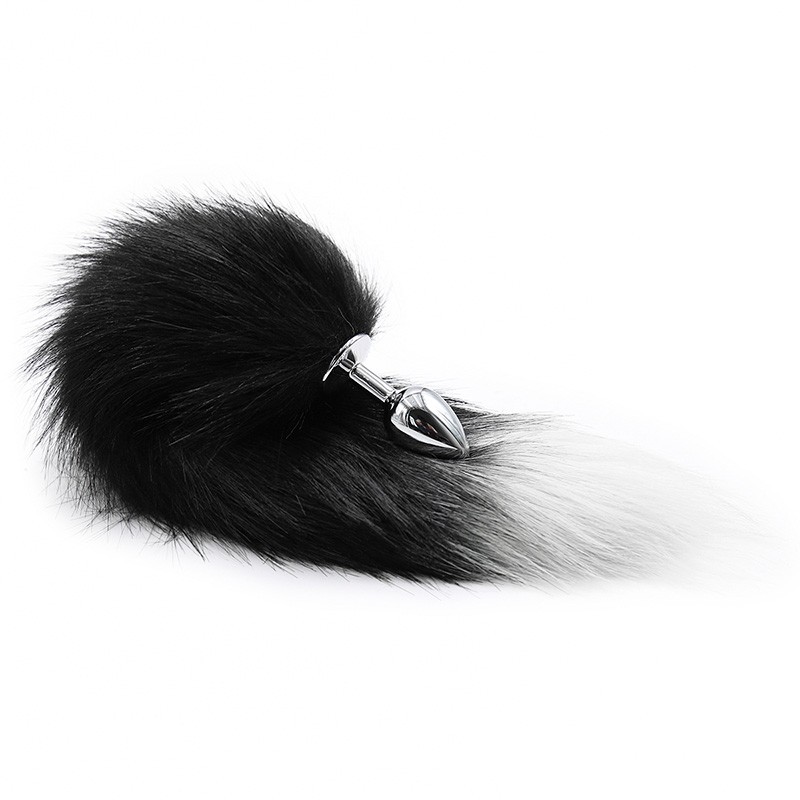 Desata al animal que llevas dentro y enseña tu faceta más salvaje en la cama. Cola de zorro negro con blanco con plug metálico. Tamaño pequeño ideal para principiantes.