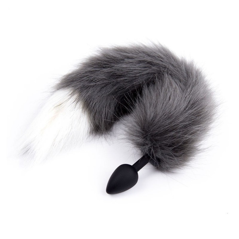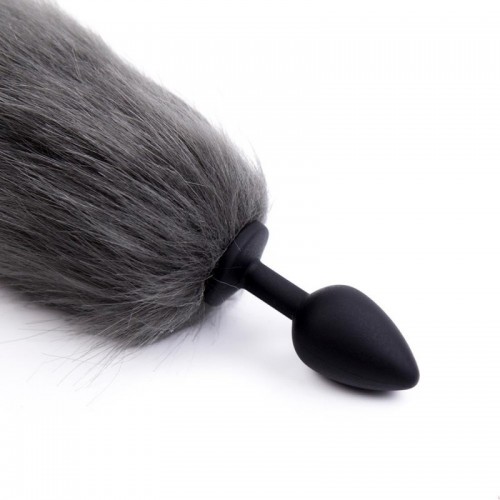 Cola de Zorro con Plug de Silicona - Gris Oscuro 45 cm