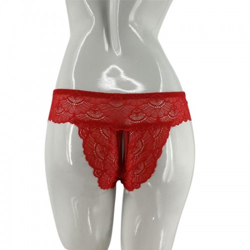 Esta pantaleta de encaje rojo está pensada para insinuar con elegancia. Su encaje floral semitransparente se adapta suavemente a las curvas, mientras el diseño abierto en la entrepierna añade un toque atrevido y sugerente que invita a jugar con la imaginación. Ligera, femenina y cómoda, es ideal para complementar conjuntos sensuales o como pieza protagonista en un look íntimo y seguro.