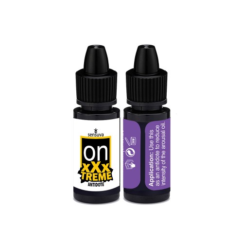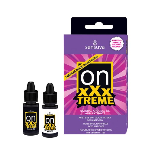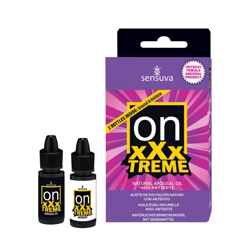 ON xXxTREME es el aceite de estimulación más intenso jamás creado por la marca Sensuva. Su fórmula botánica 100% natural genera una potente sensación de calor y vibración en el clítoris, despertando terminaciones nerviosas, aumentando el flujo sanguíneo y llevando la sensibilidad a otro nivel. Tan extremo que viene con un segundo frasco de antídoto para disminuir el efecto si resulta demasiado fuerte.