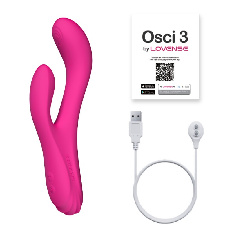 Osci 3 de Lovense es un vibrador de conejo de última generación diseñado para estimular simultáneamente el clítoris y el punto G, combinando oscilaciones (pulsos), vibraciones y calefacción. Su diseño ergonómico y flexible permite un ajuste cómodo, mientras que la App Lovense Remote ofrece control a corta y larga distancia, sincronización con música, videos o juegos, y creación de patrones infinitos para una experiencia totalmente personalizada, ya sea en solitario o con tu pareja.