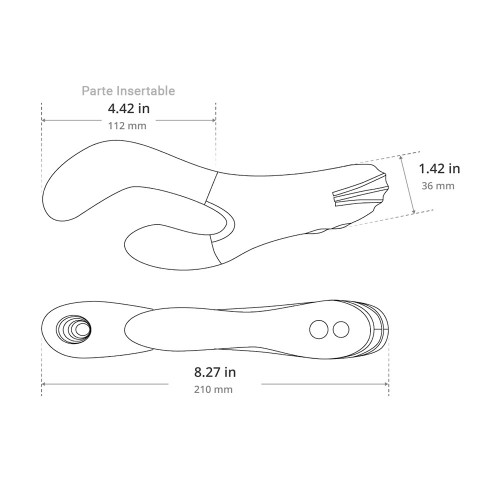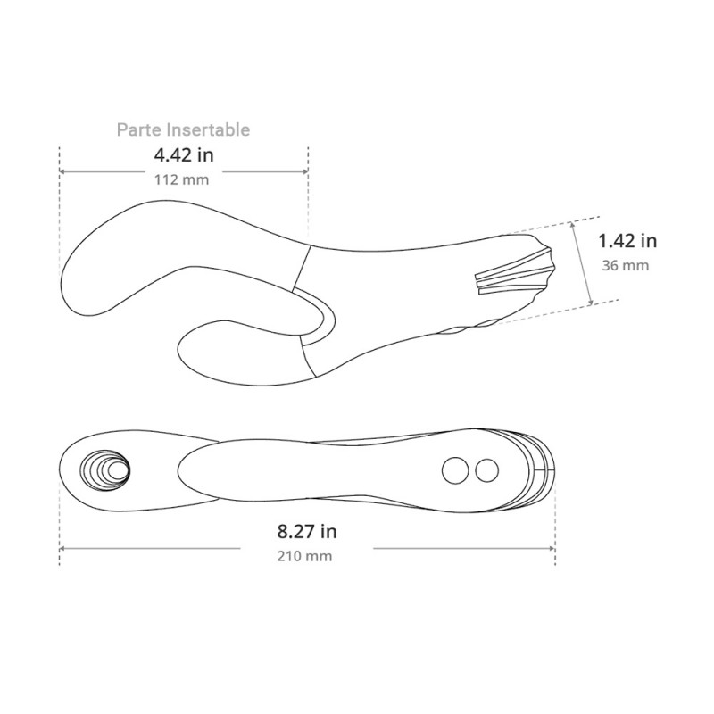 - Estimulación dual: oscilación (pulsos) para punto G (hasta 6.500/min) y vibración del clítoris (hasta 7.500/min)